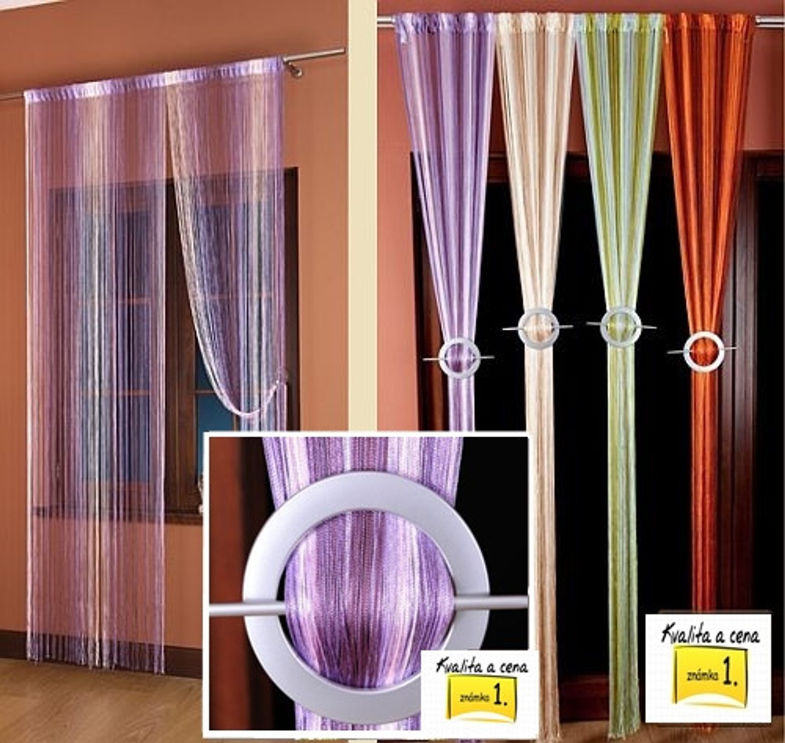 Provázkové záclony nepotřebují řasení. Vysoká životnost a módní design mluví za vše. Provázková záclona dodá vašemu interiéru výjimečný a elegantní vzhled.