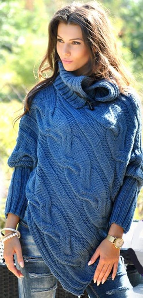 Navigace: DÁMSKÁ MÓDA » Ponča, pletené šaty » Dámské pončo s rolákem - blue