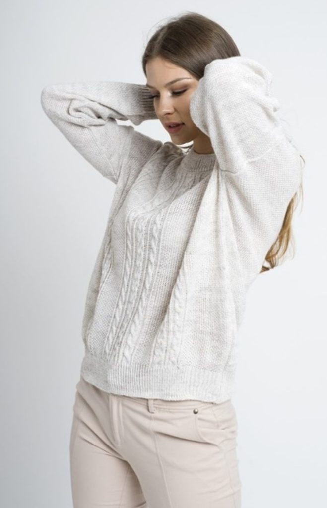 Krásný moderní svetr s výrazným pleteným vzorem, který vypadá naprosto úžasně.
