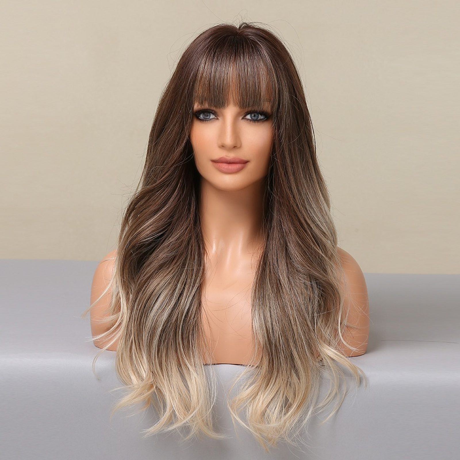 Nabízíme Vám exkluzivní přirozenou paruku Laura s krásnými ombre světle hnědé a blond vlasy.