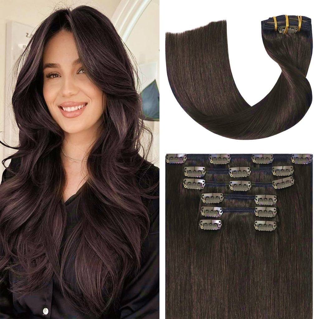 CLIP IN vlasy - 100% Lidské vlasy k prodloužení REMY, tmavě hnědé