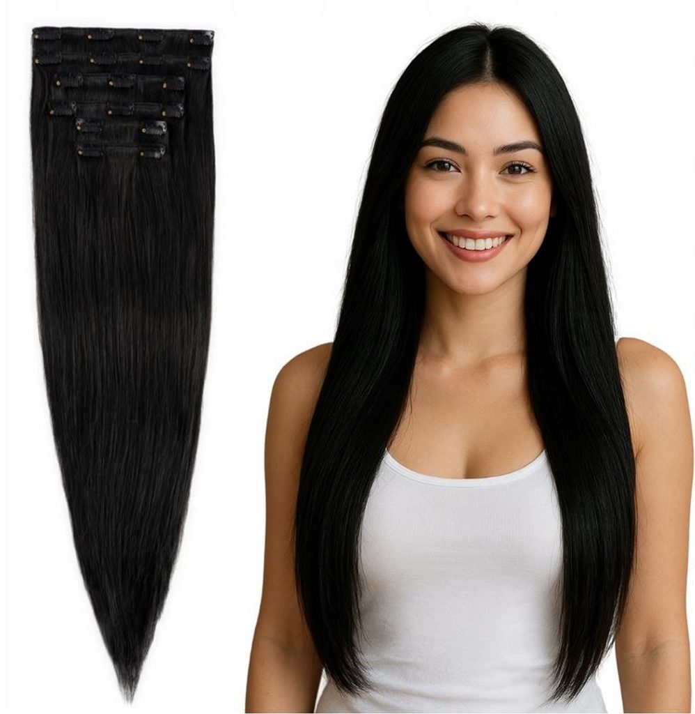 CLIP IN vlasy - 100% Lidské vlasy k prodloužení REMY, černá - extra dlouhé 57 cm