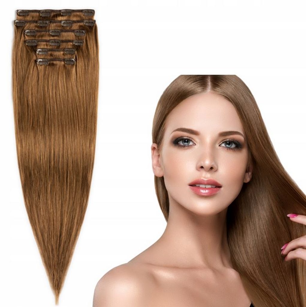 CLIP IN vlasy - 100% Lidské vlasy k prodloužení REMY, světle hnědá - extra dlouhé 57 cm