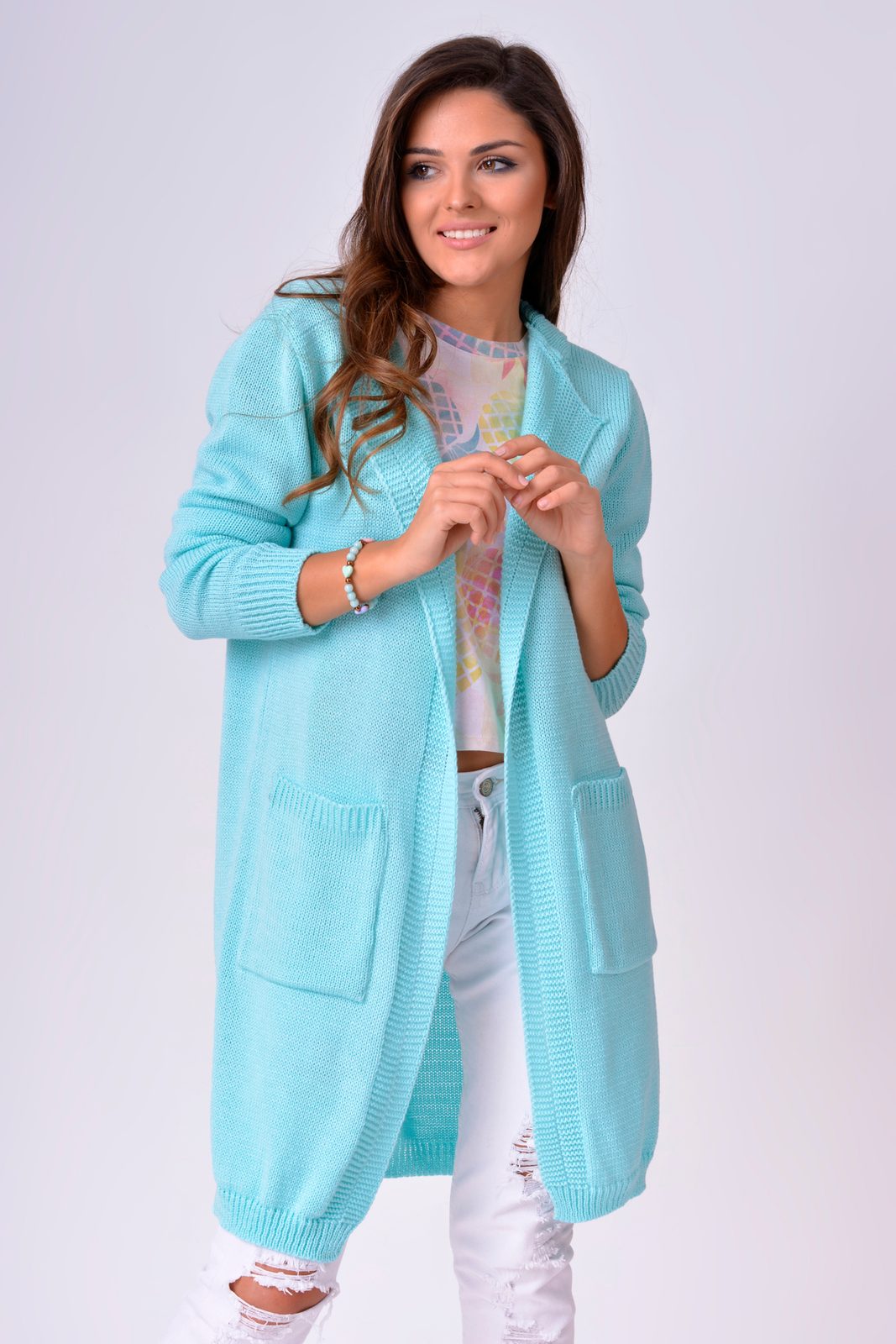 Navigace: VÝPRODEJ AŽ - 70% » Dámský kardigan s kapsami - mint