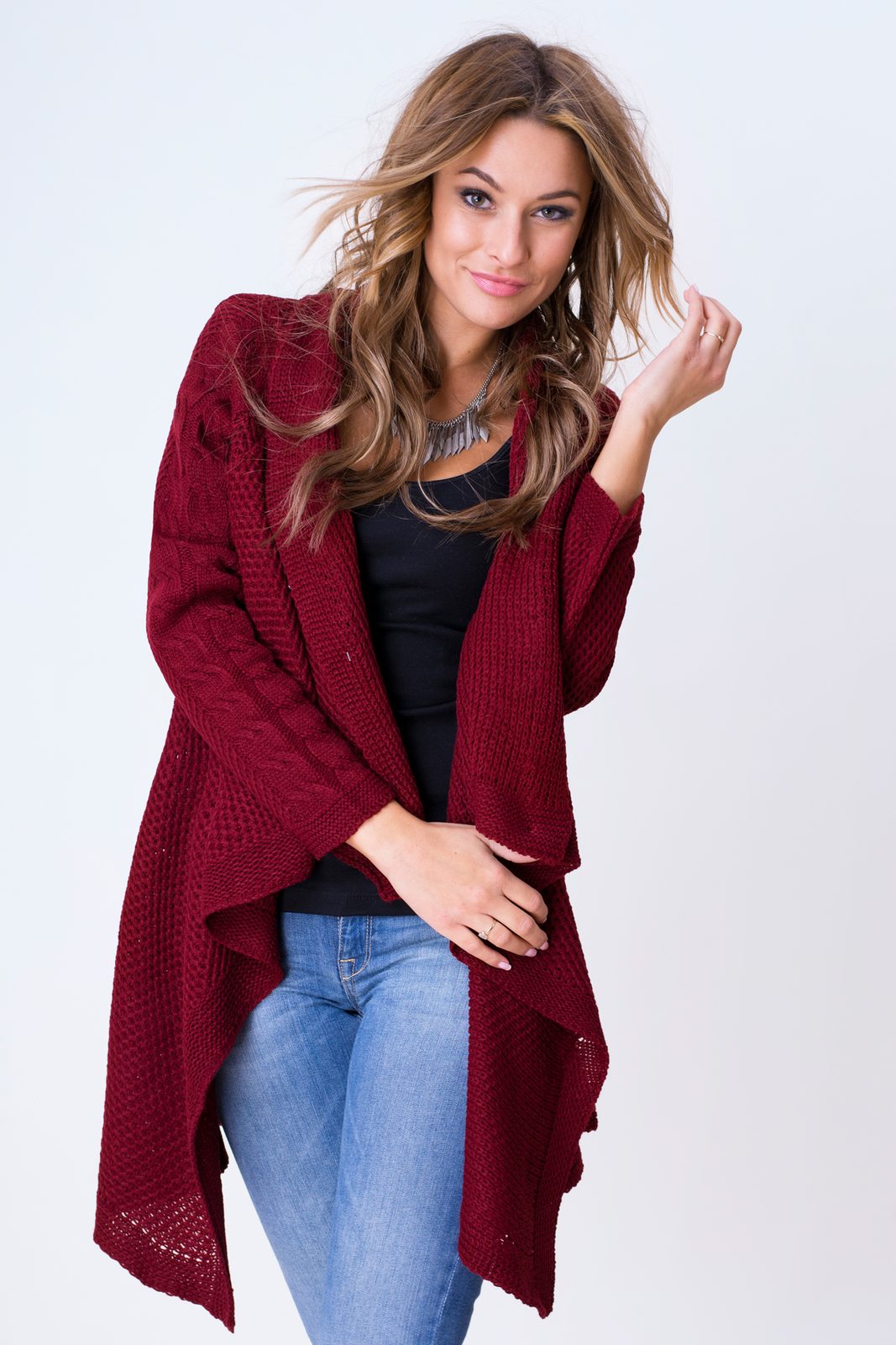 Navigace: VÝPRODEJ AŽ - 70% » Dámský nadčasový kardigan - Bordó