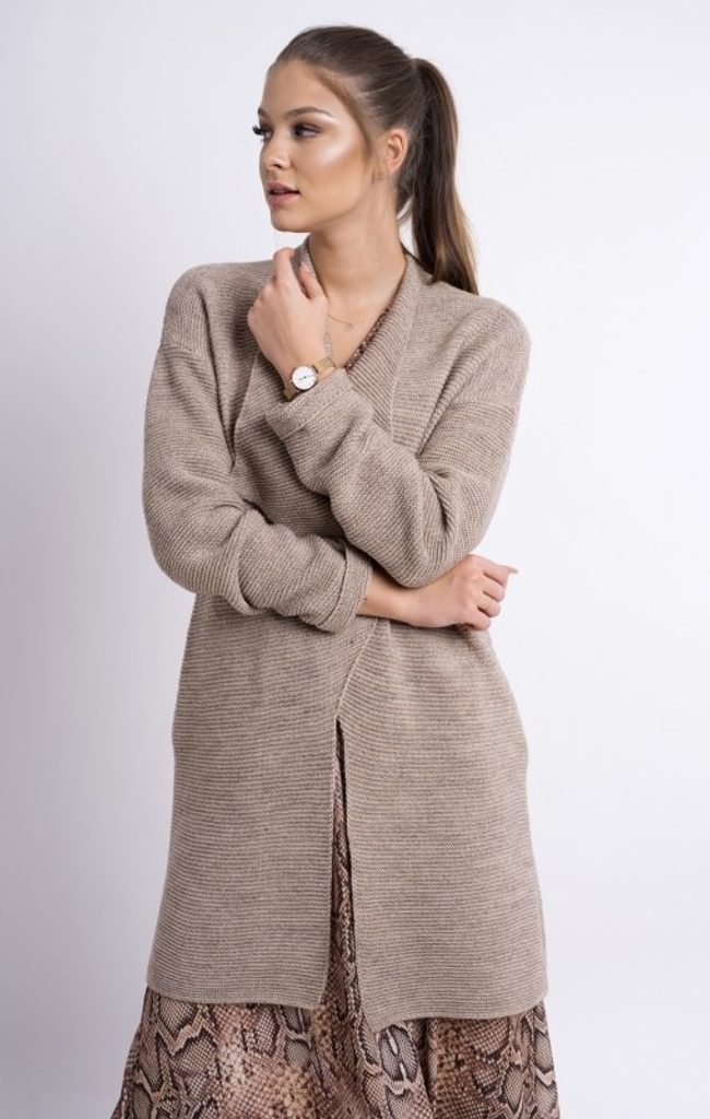 Navigace: VÝPRODEJ AŽ - 70% » Dámský oversize kardigan s límcem - Mocca