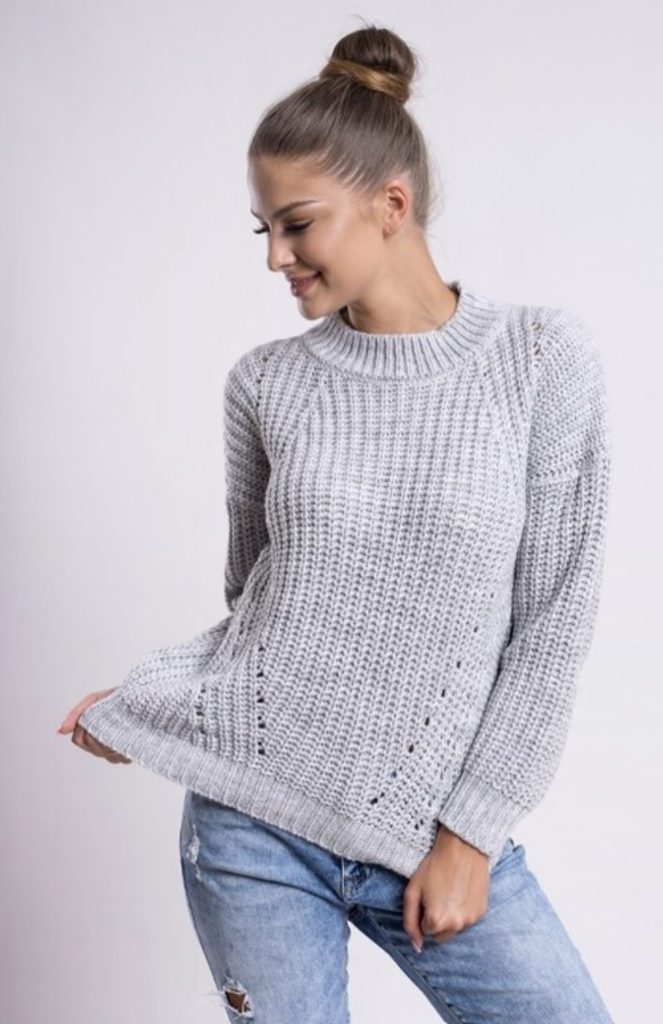 Krásný moderní svetr s výrazným pleteným vzorem, který vypadá naprosto úžasně.