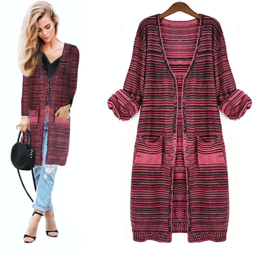 Navigace: VÝPRODEJ AŽ - 70% » Dámský pruhovaný kardigan - Red