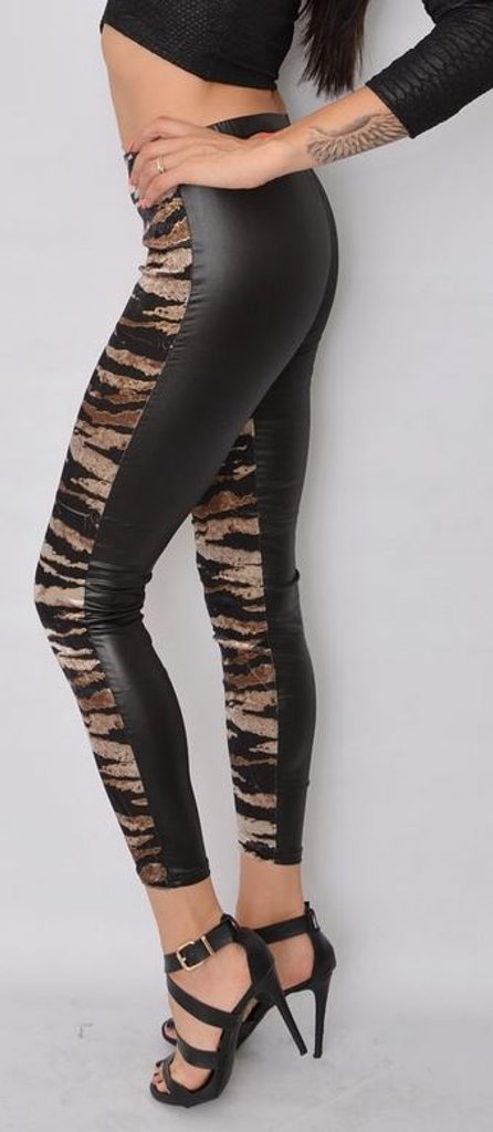 Luxusní party glamour legíny s latexovým sedem a semišovým vzorem